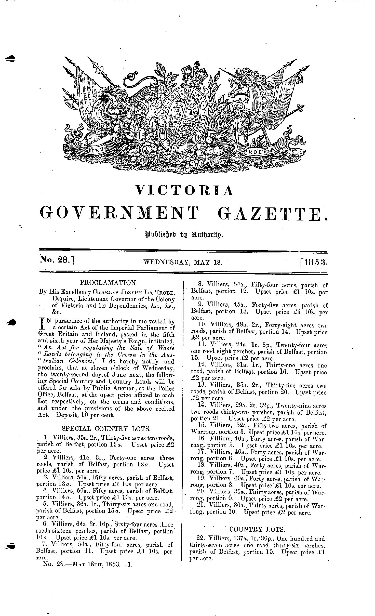 | Gazette 28, Date: Wednesday, May 18th 1853 |