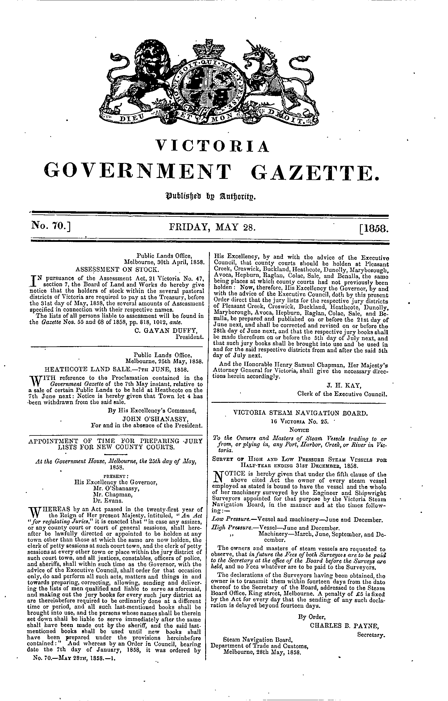 | Gazette 70, Date: Friday, May 28th 1858 |