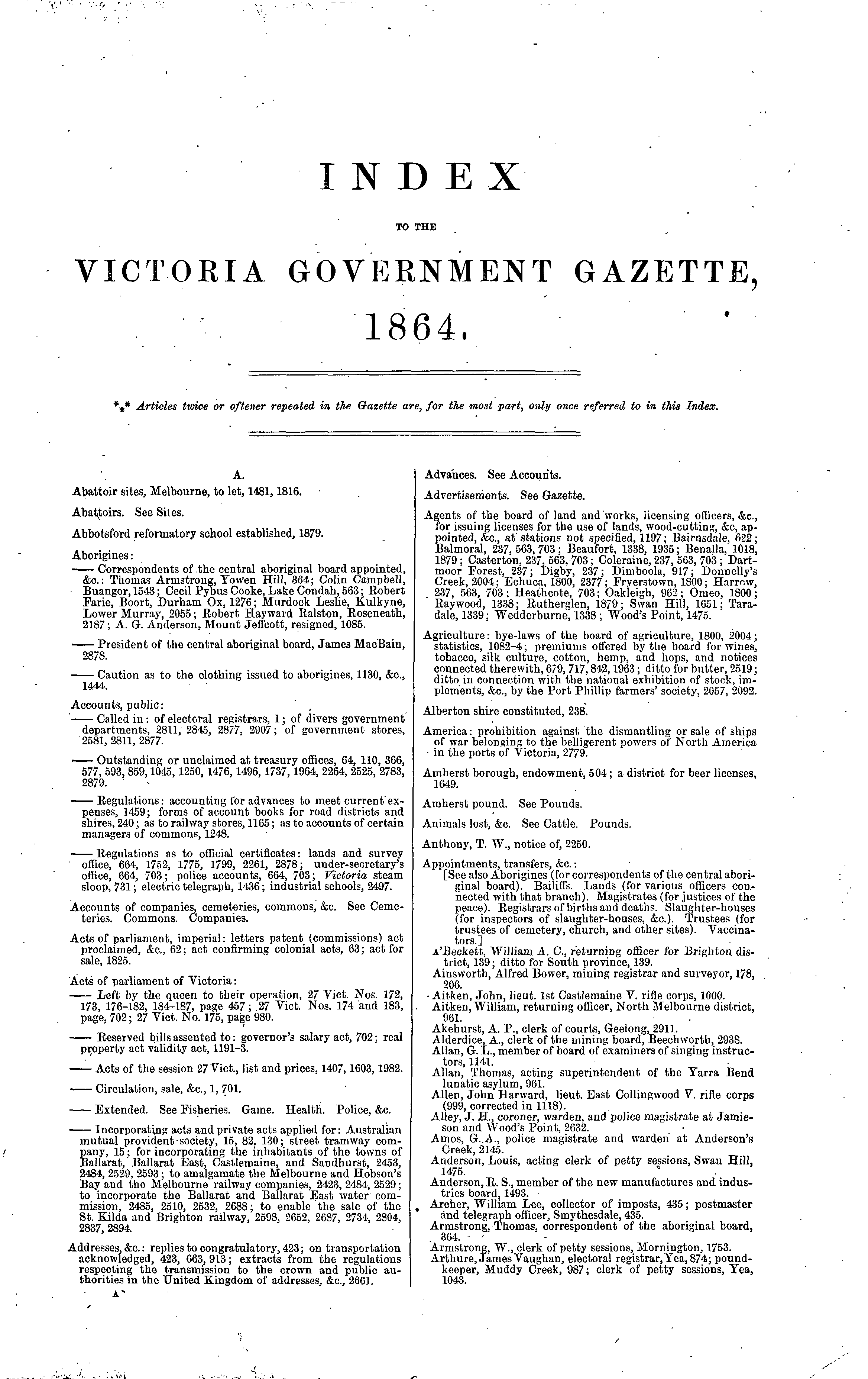 Home > 1860 to 1879 > 1864 > Index Page 1