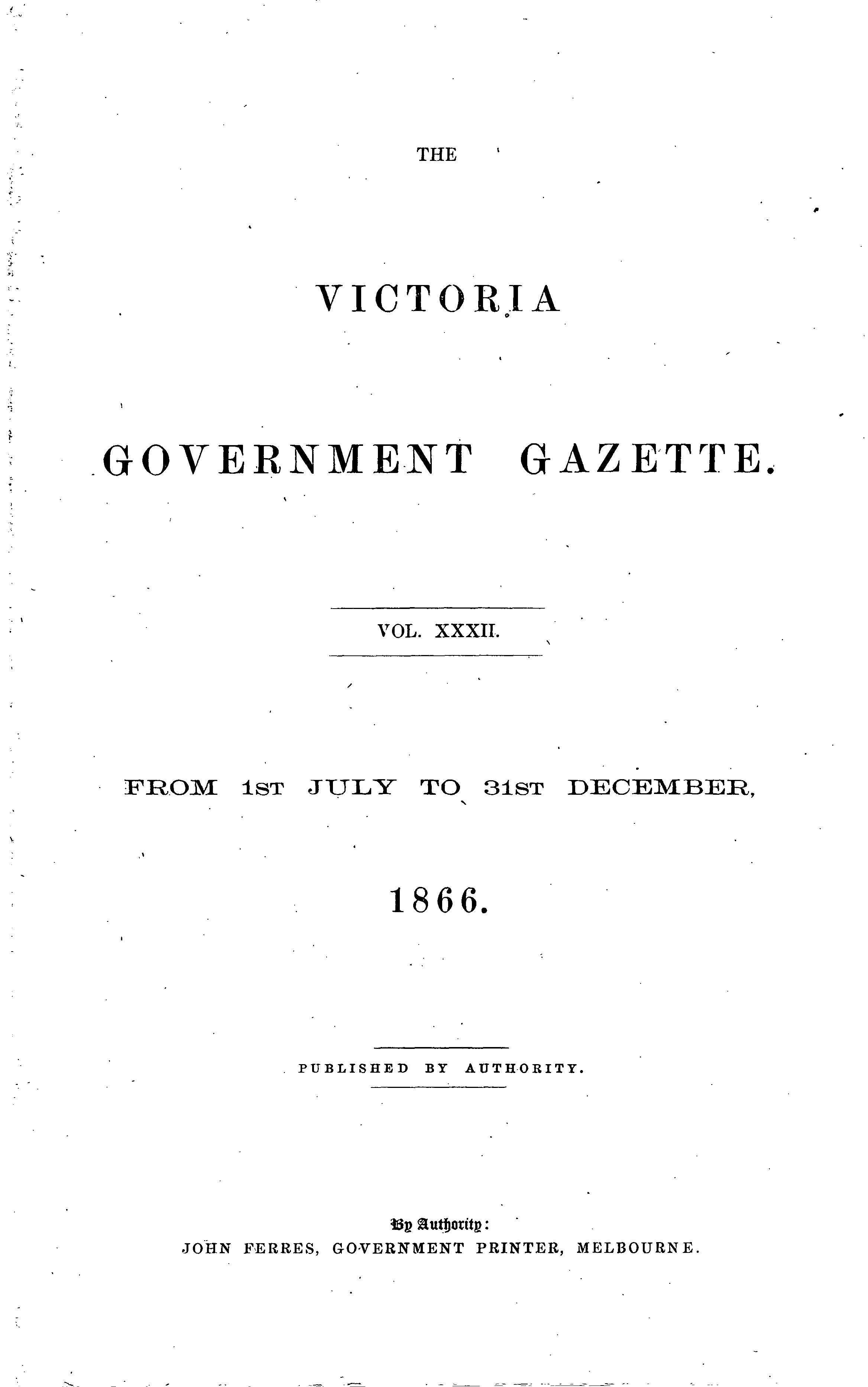 The Victoria Government Gazette is a publication of the Victorian Government Printer.