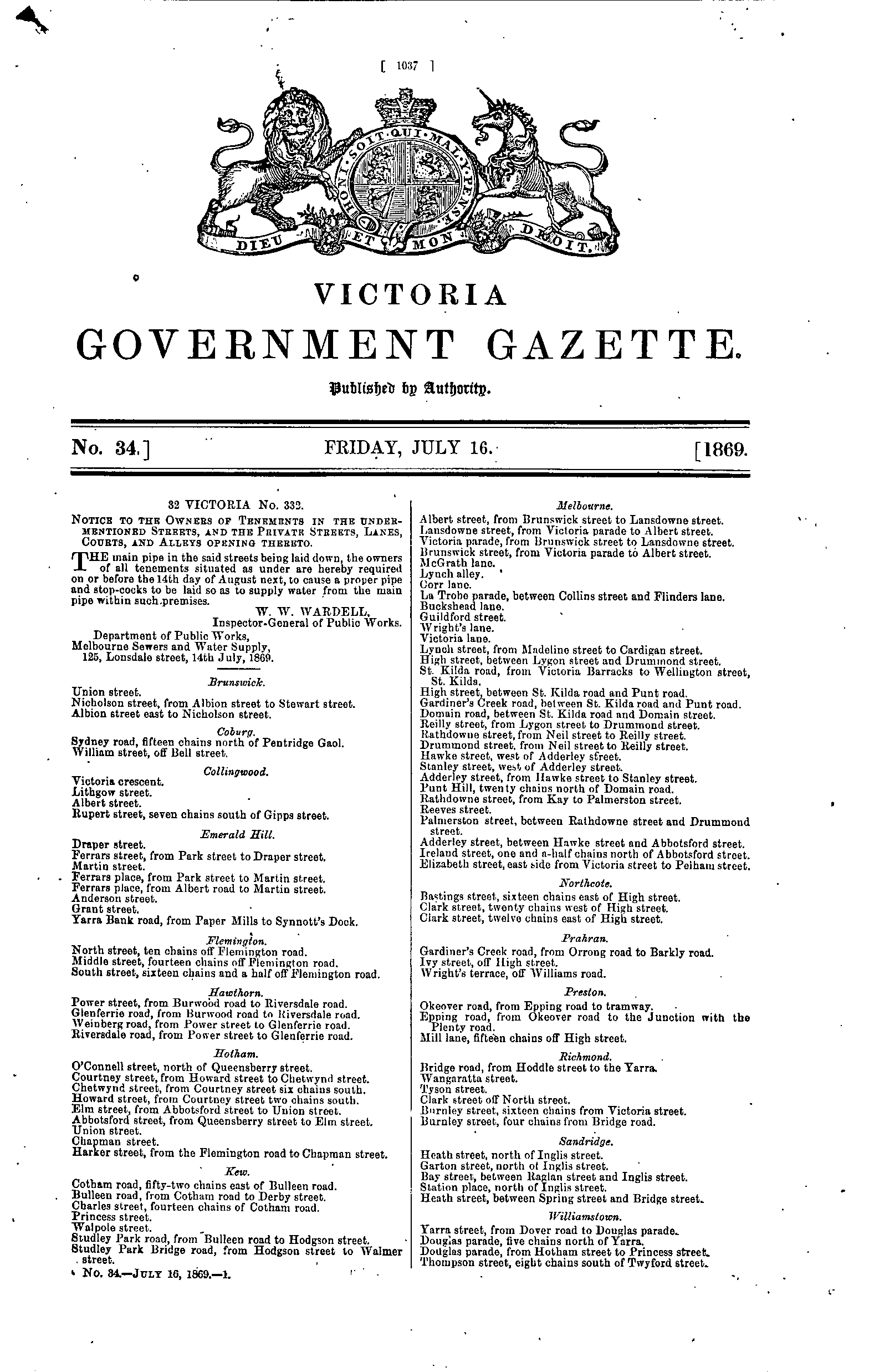 Home > 1860 to 1879 > 1869 > Gazette 34 Page 1037