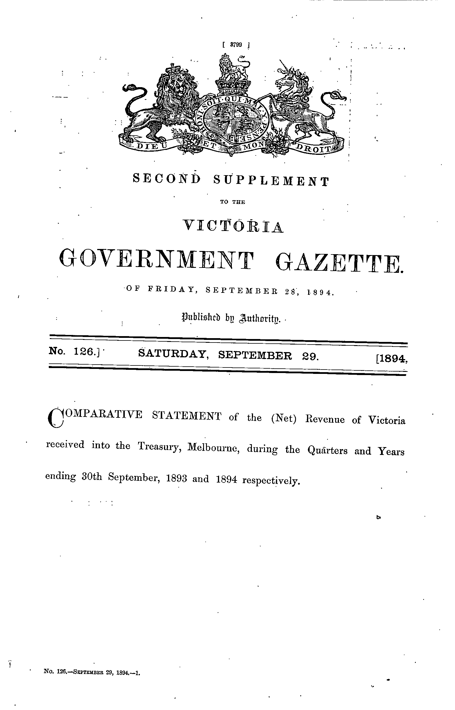 | Gazette 126, Date: Saturday, September 29th 1894 |
