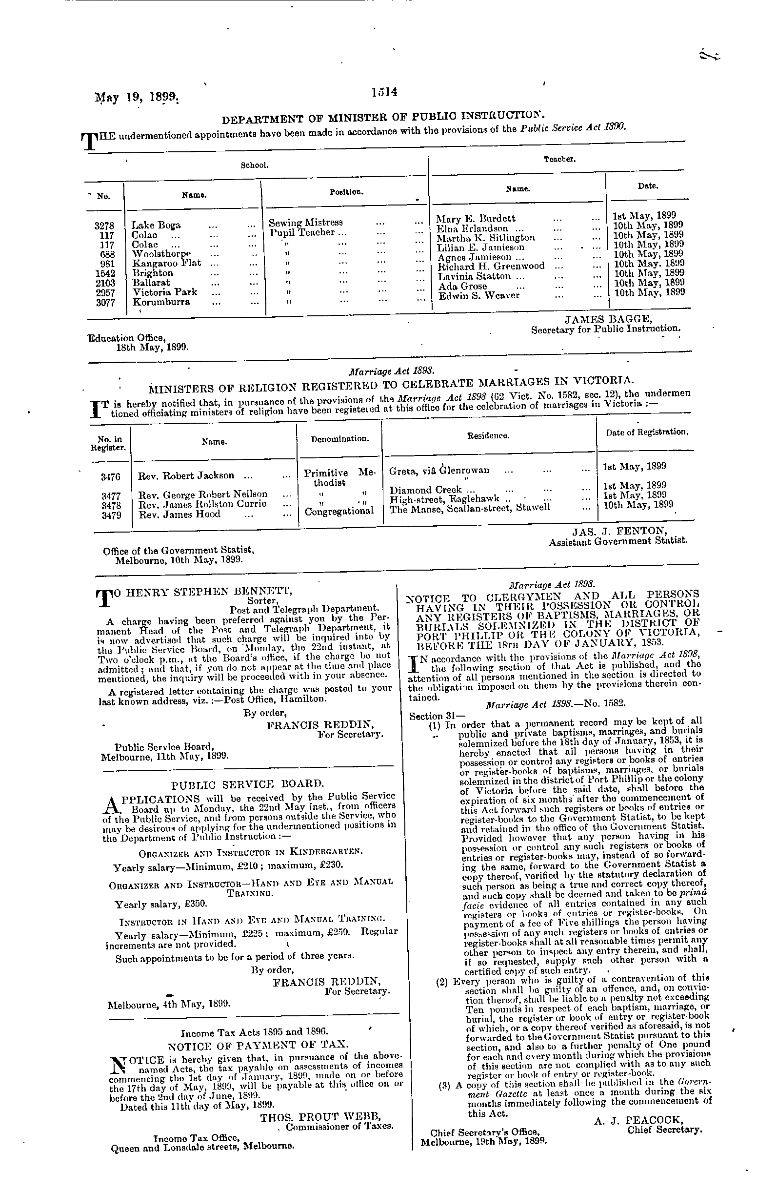 Home > 1880 to 1899 > 1899 > Gazette 34 Page 1514