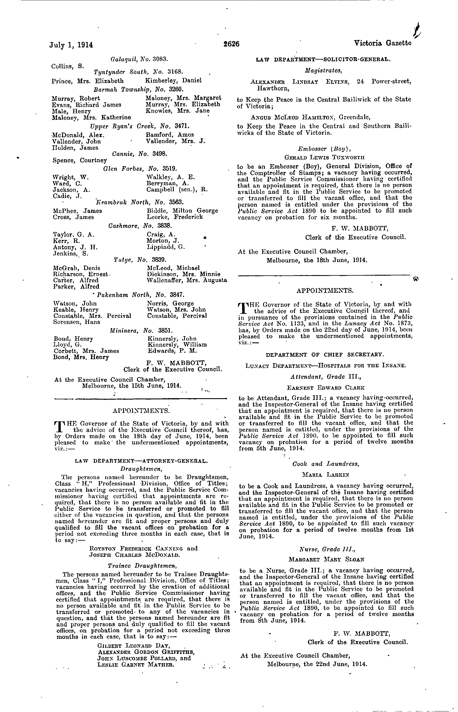 Home > 1900 to 1919 > 1914 > Gazette 93 Page 2626