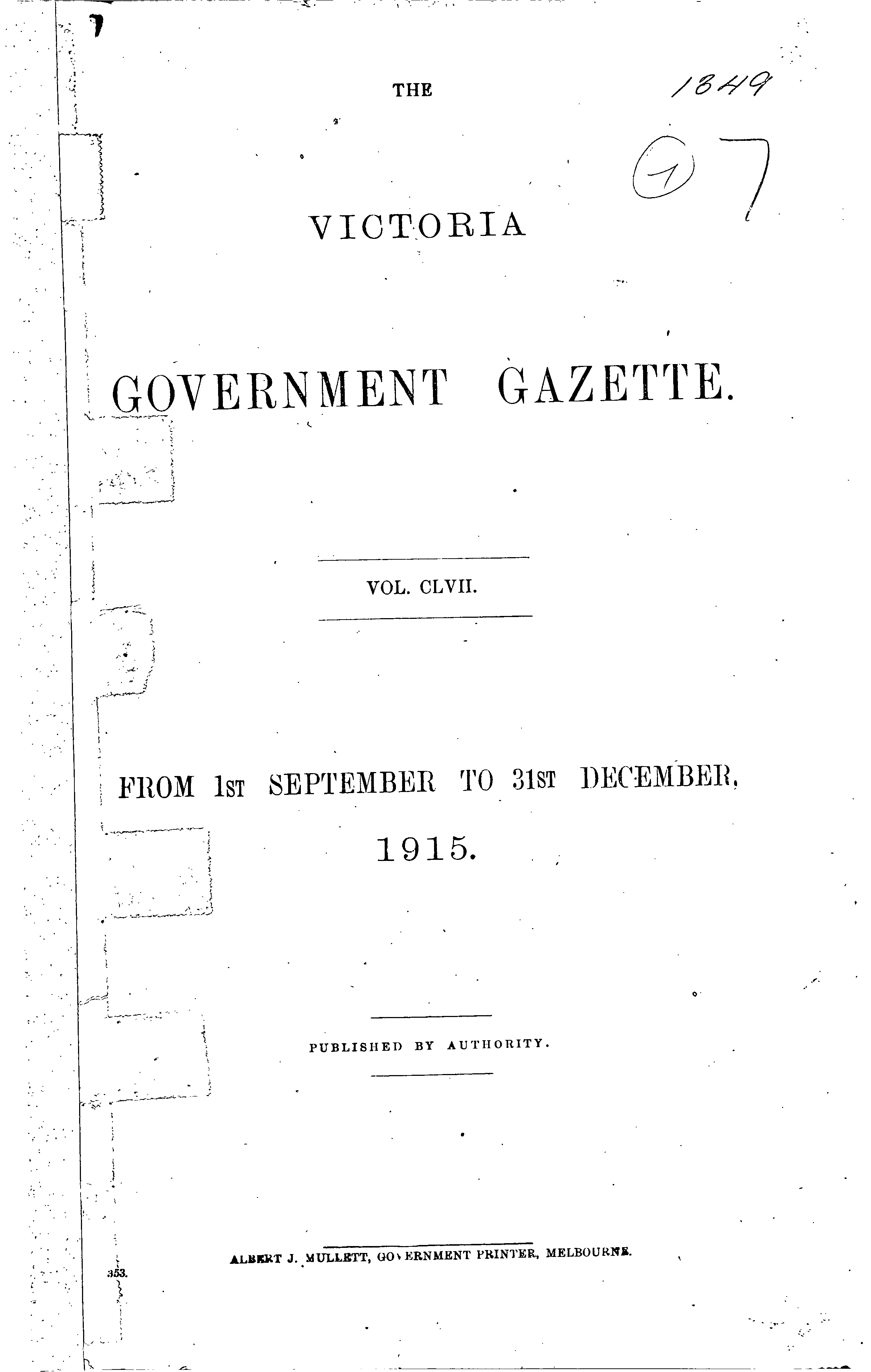 The Victoria Government Gazette is a publication of the Victorian Government Printer.