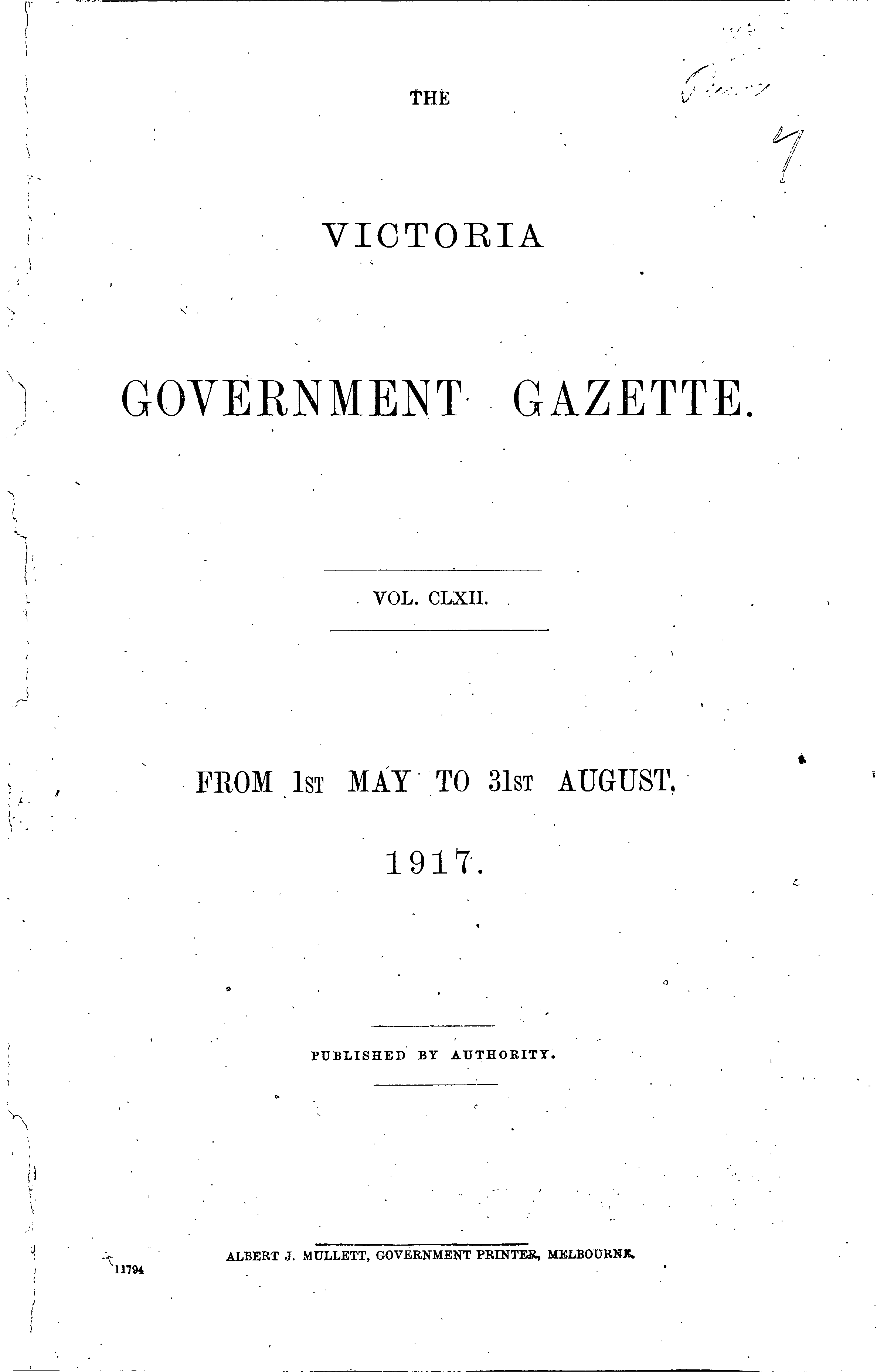 The Victoria Government Gazette is a publication of the Victorian Government Printer.