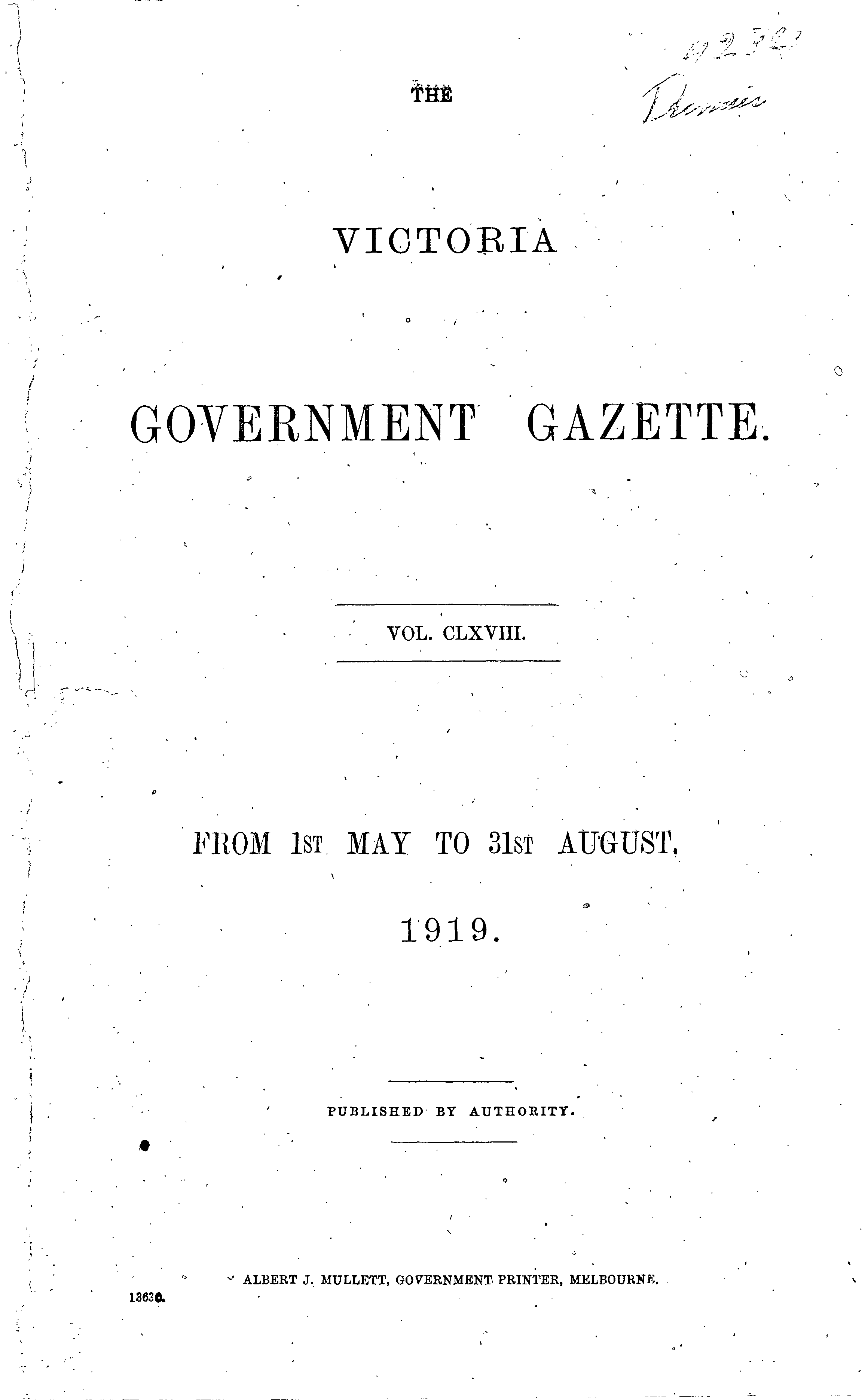 The Victoria Government Gazette is a publication of the Victorian Government Printer.