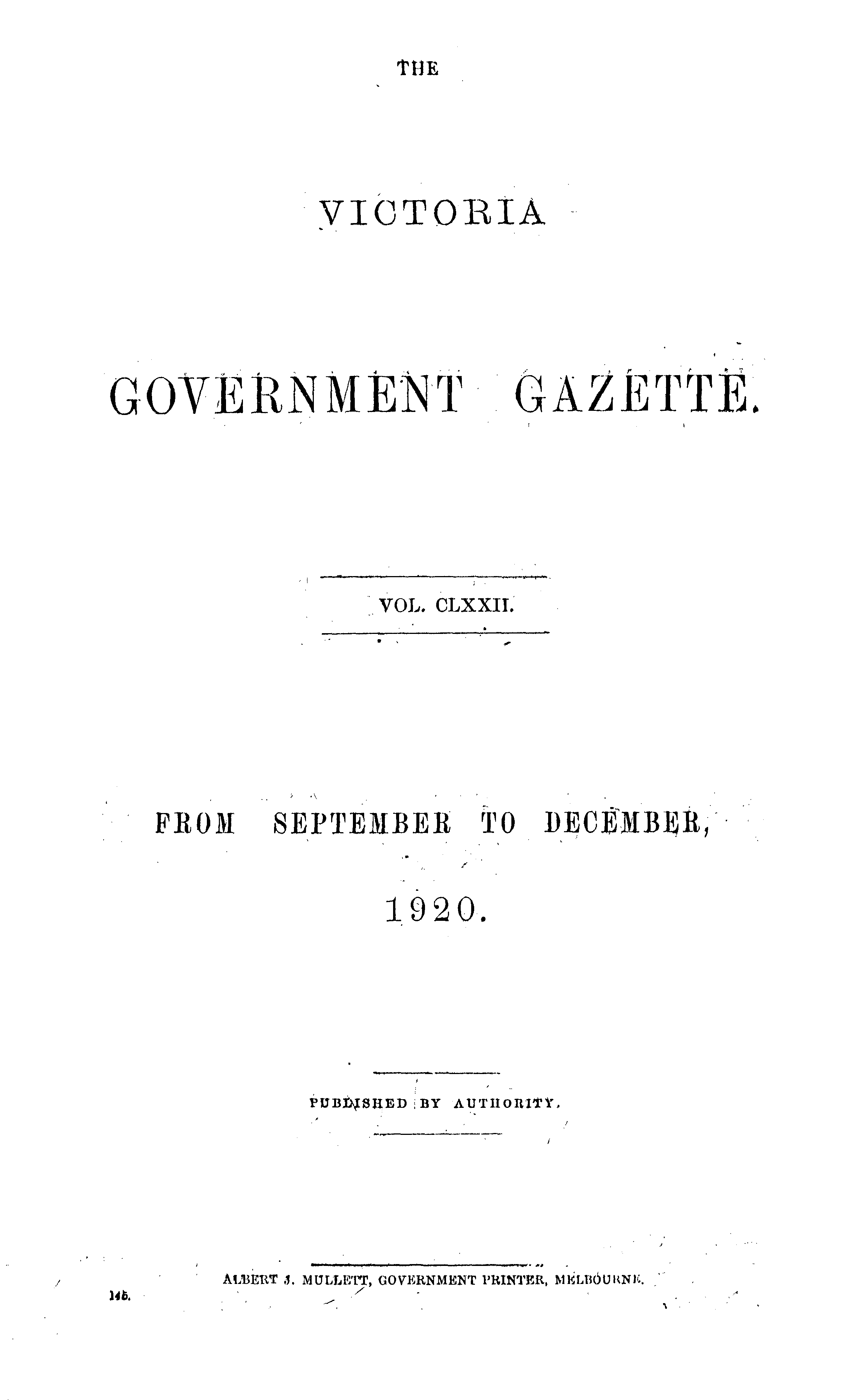 The Victoria Government Gazette is a publication of the Victorian Government Printer.