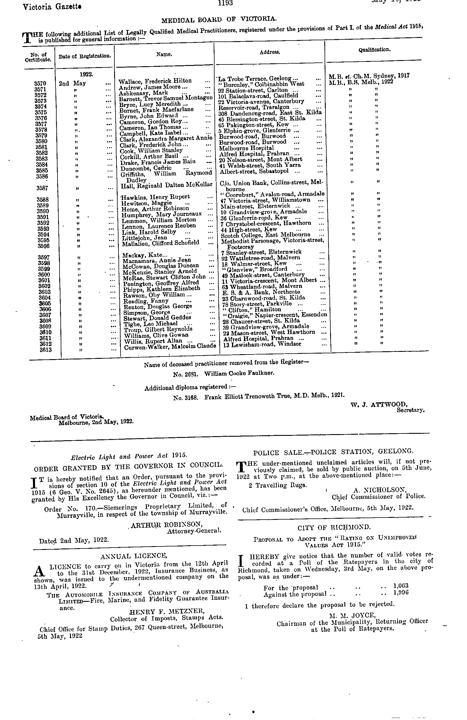 Home > 1920 to 1939 > 1922 > Gazette 49 Page 1193