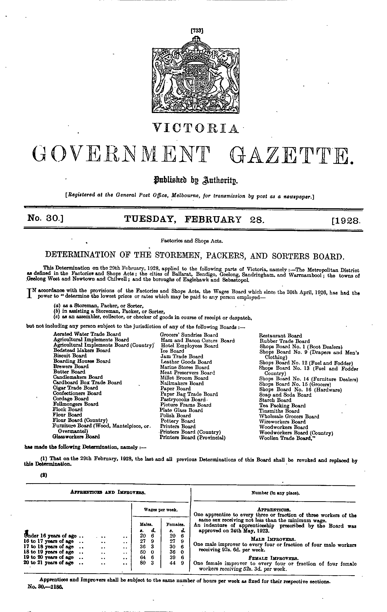 Home > 1920 to 1939 > 1928 > Gazette 30 Page 733
