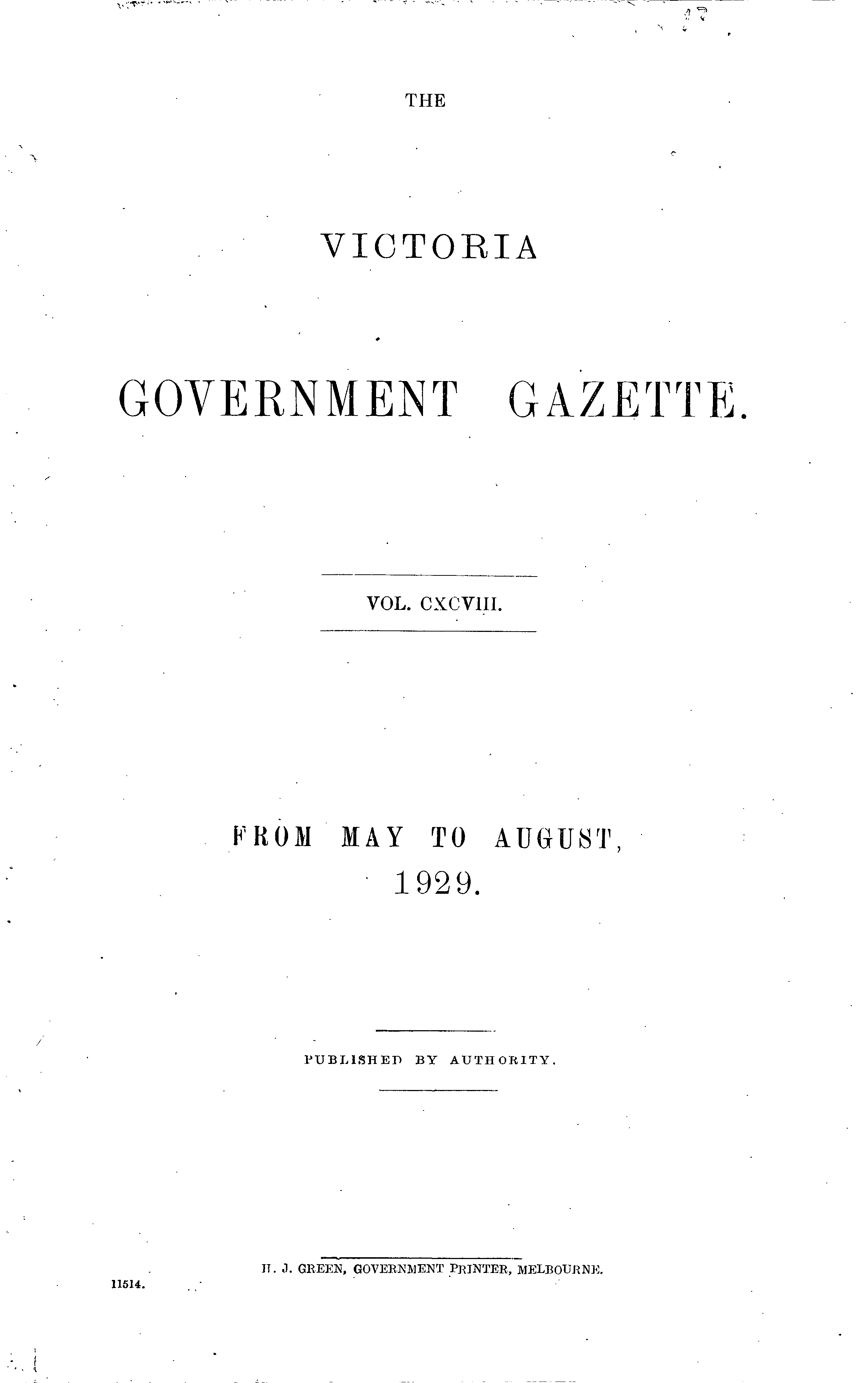 The Victoria Government Gazette is a publication of the Victorian Government Printer.