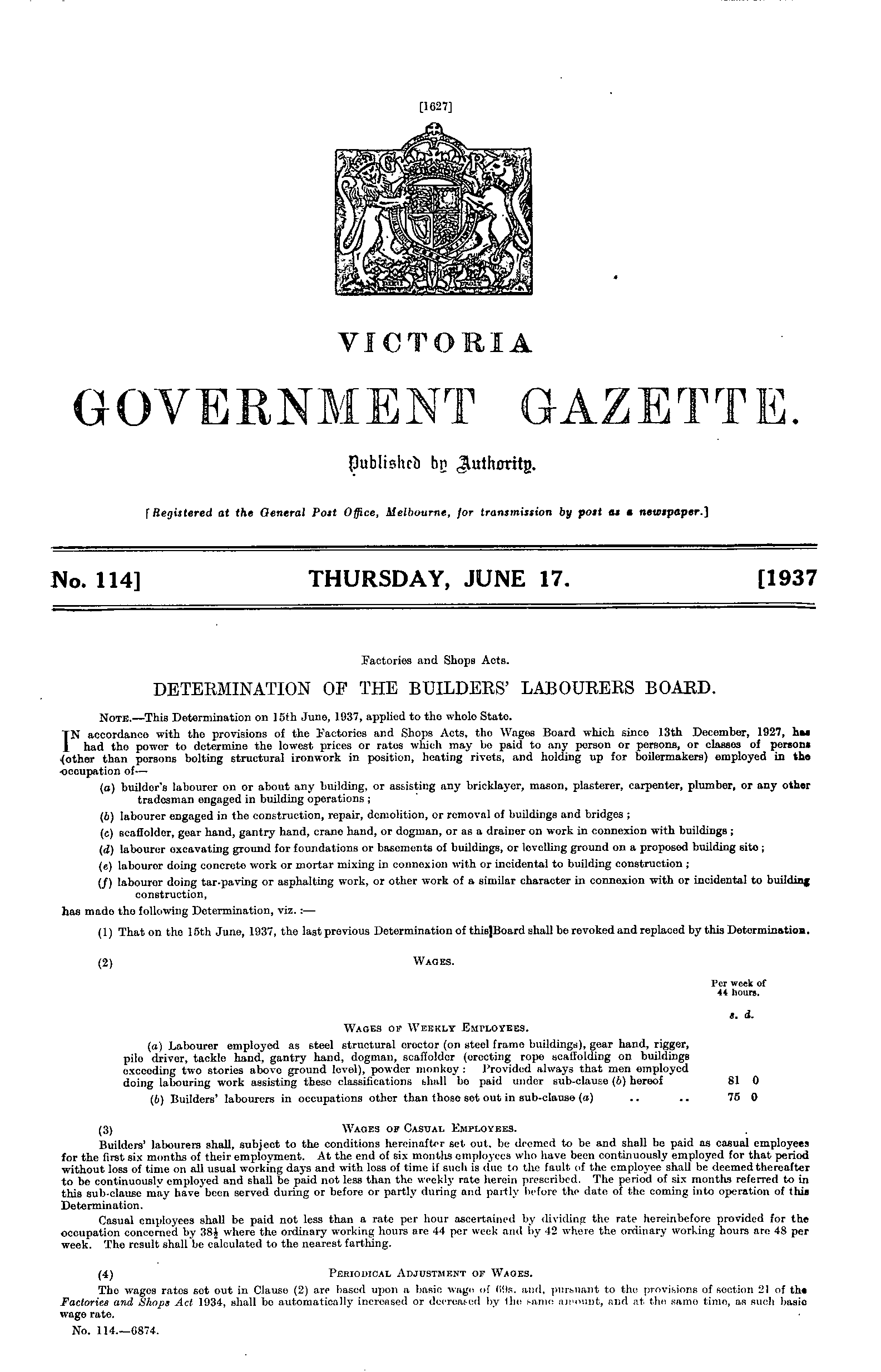 | Gazette 114, Date: Thursday, June 17th 1937 |