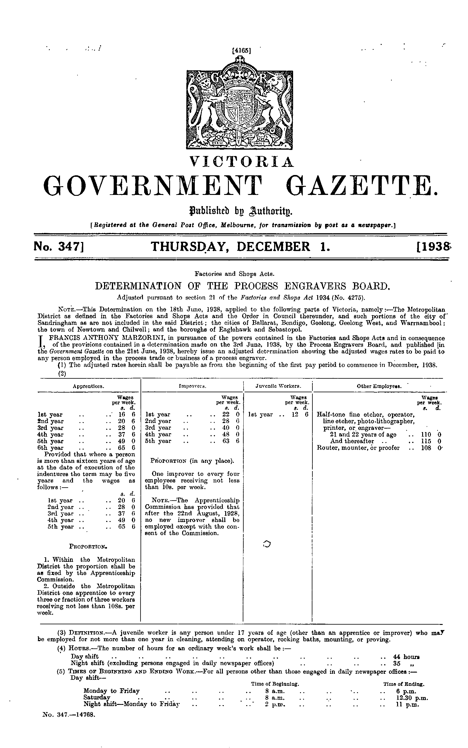 | Gazette 347, Date: Thursday, December 01st 1938 |