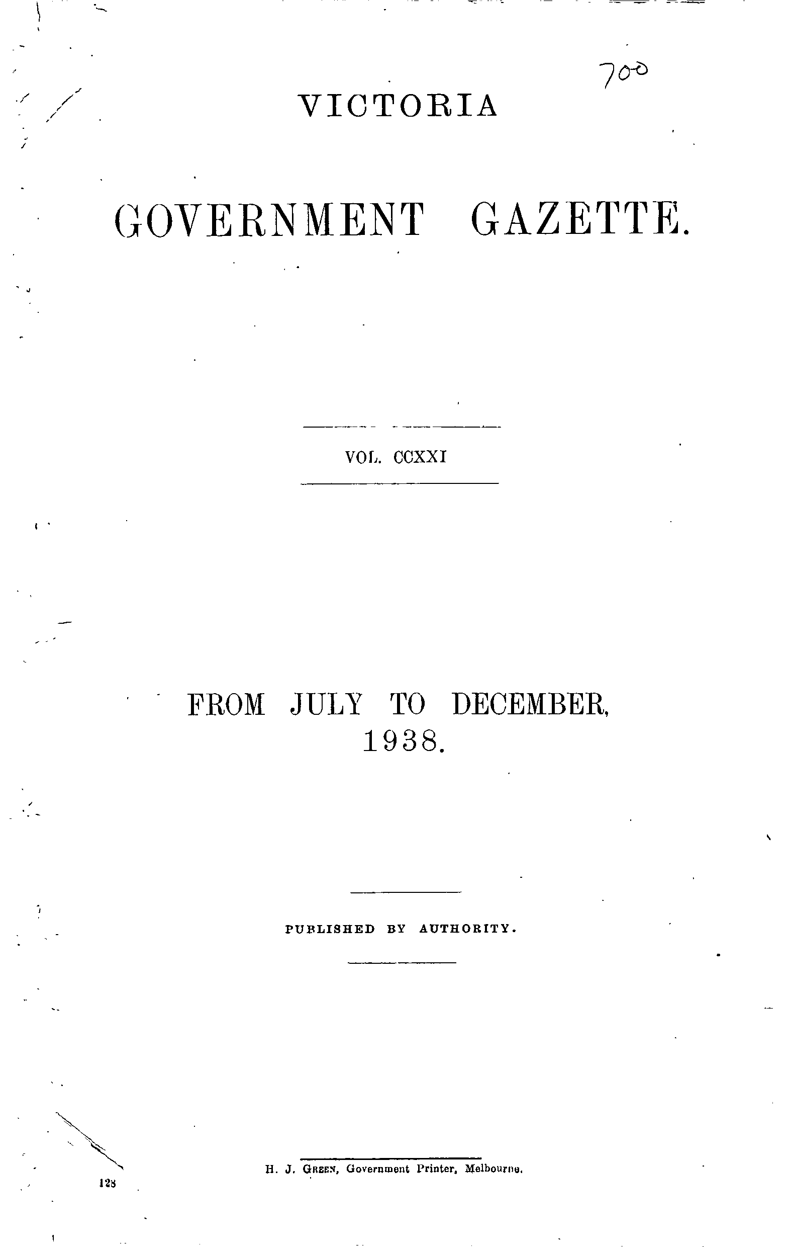 The Victoria Government Gazette is a publication of the Victorian Government Printer.
