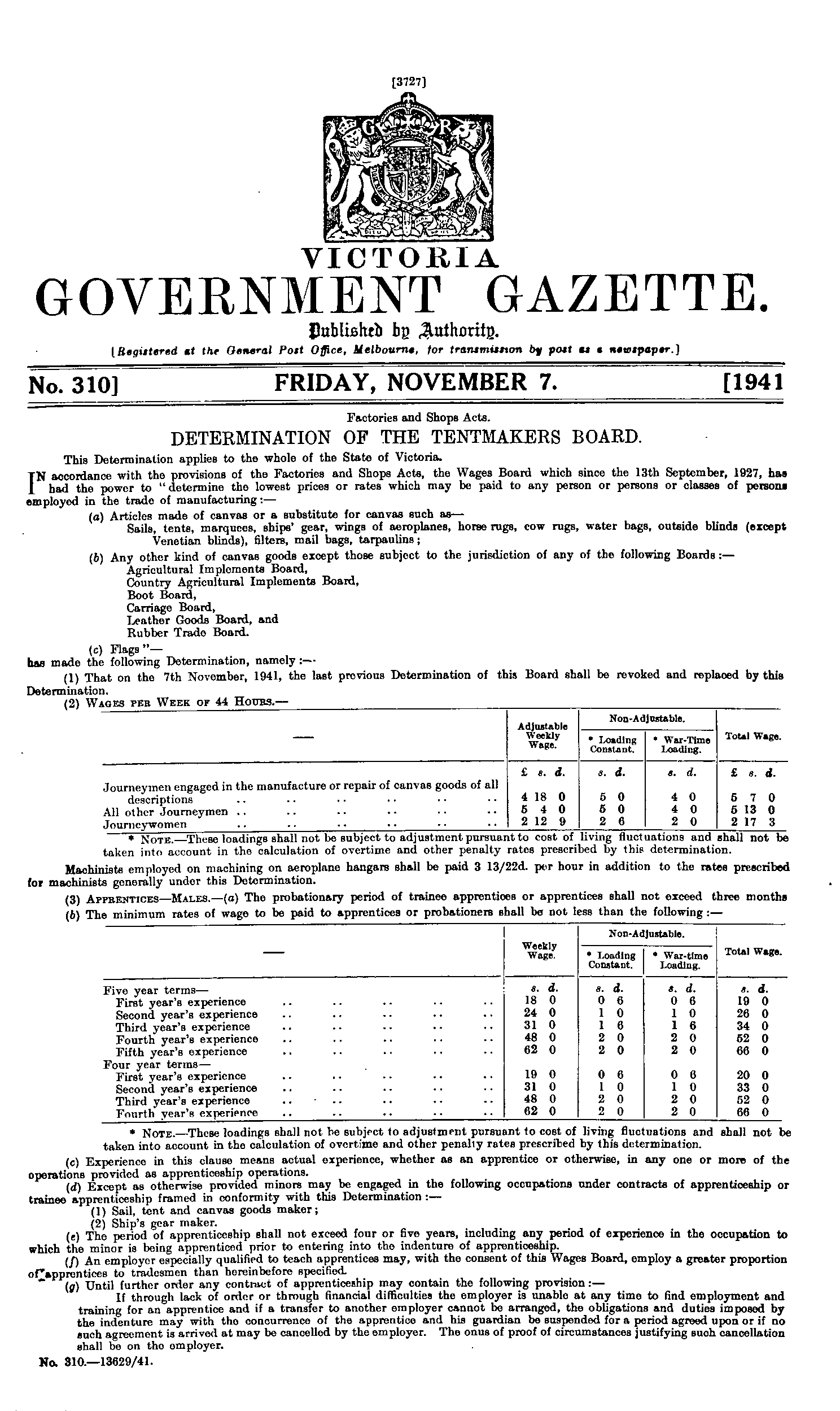 Home > 1940 to 1959 > 1941 > Gazette 310 Page 3727