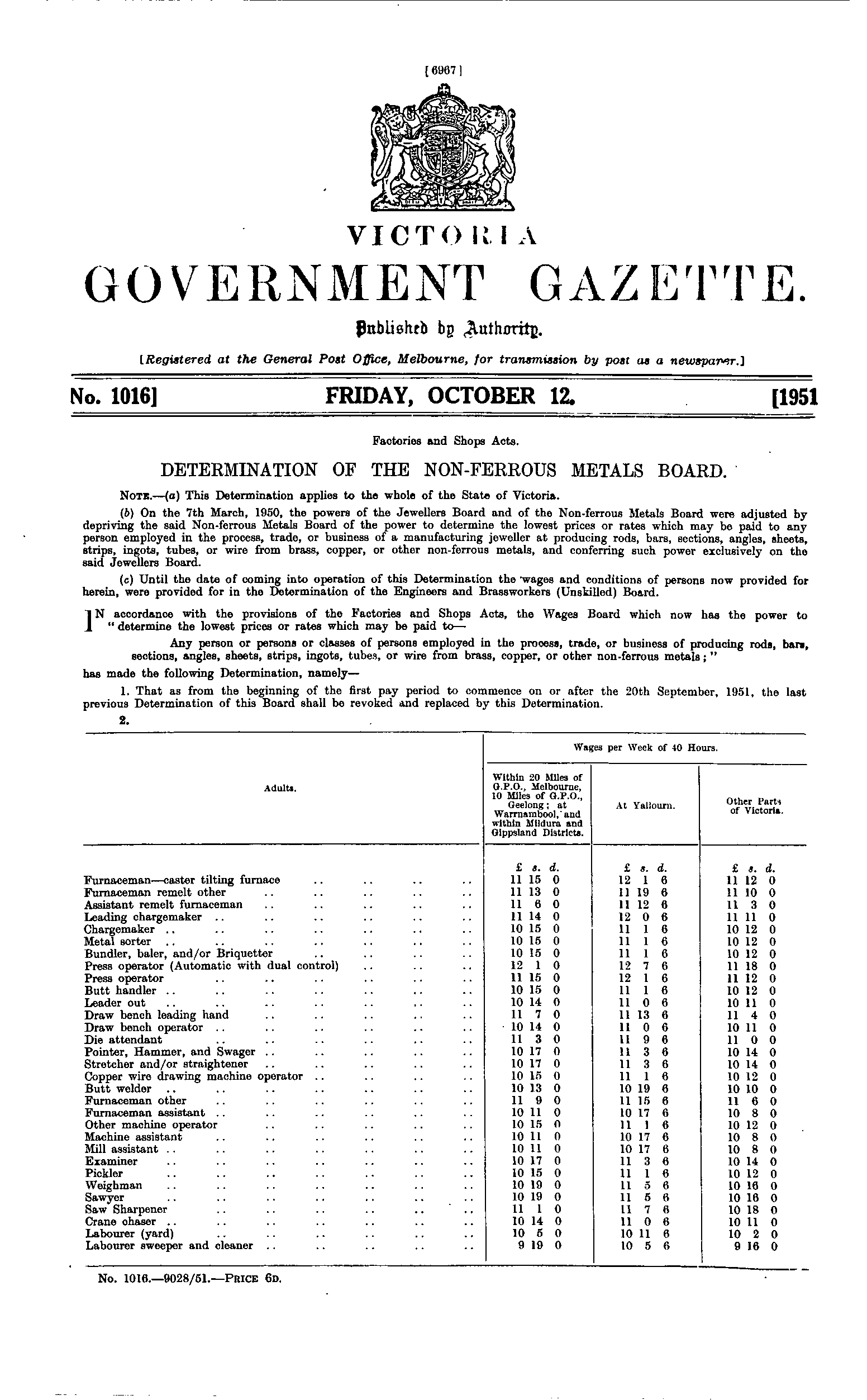 Home > 1940 to 1959 > 1951 > Gazette 1016 Page 6967