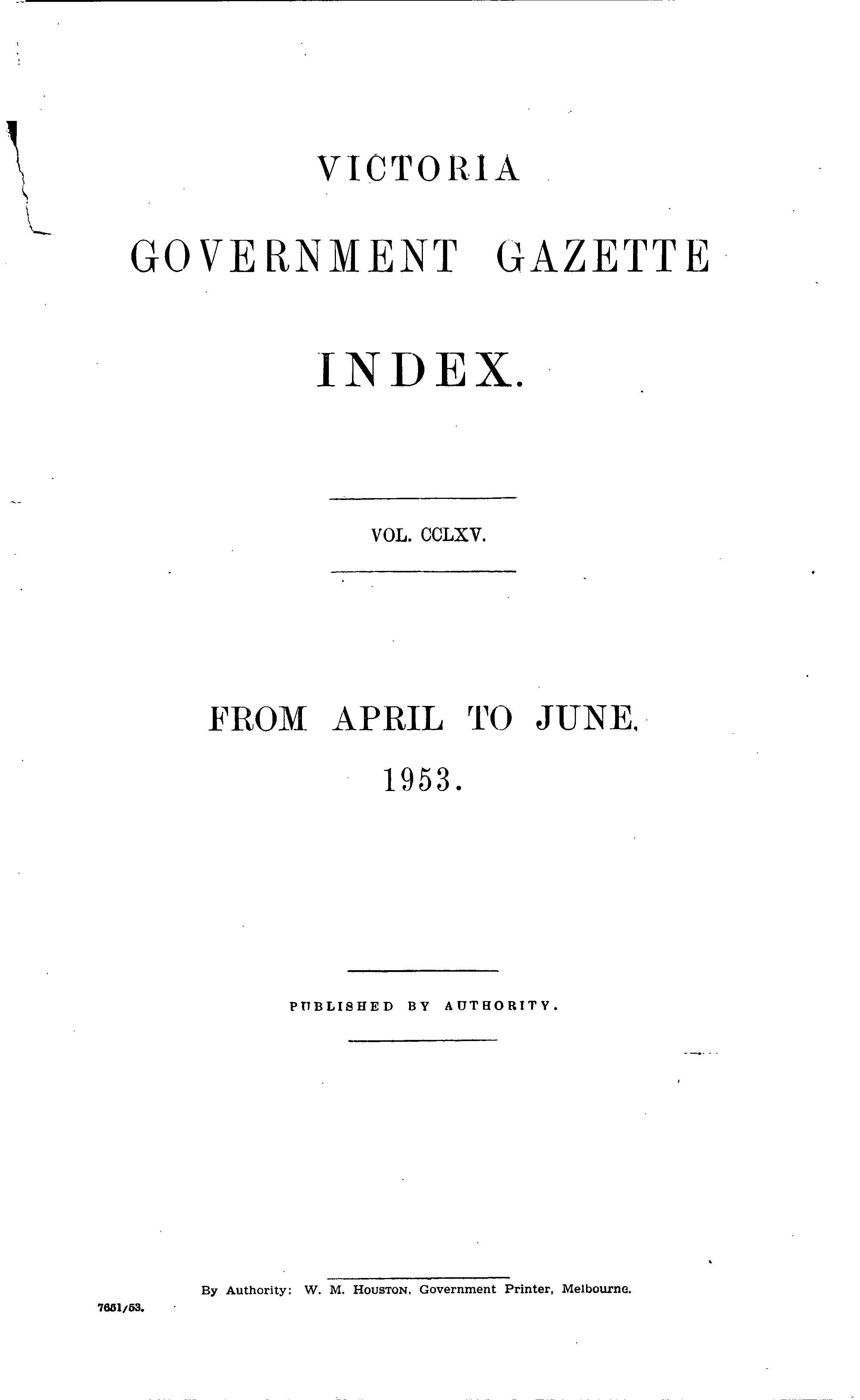 The Victoria Government Gazette is a publication of the Victorian Government Printer.