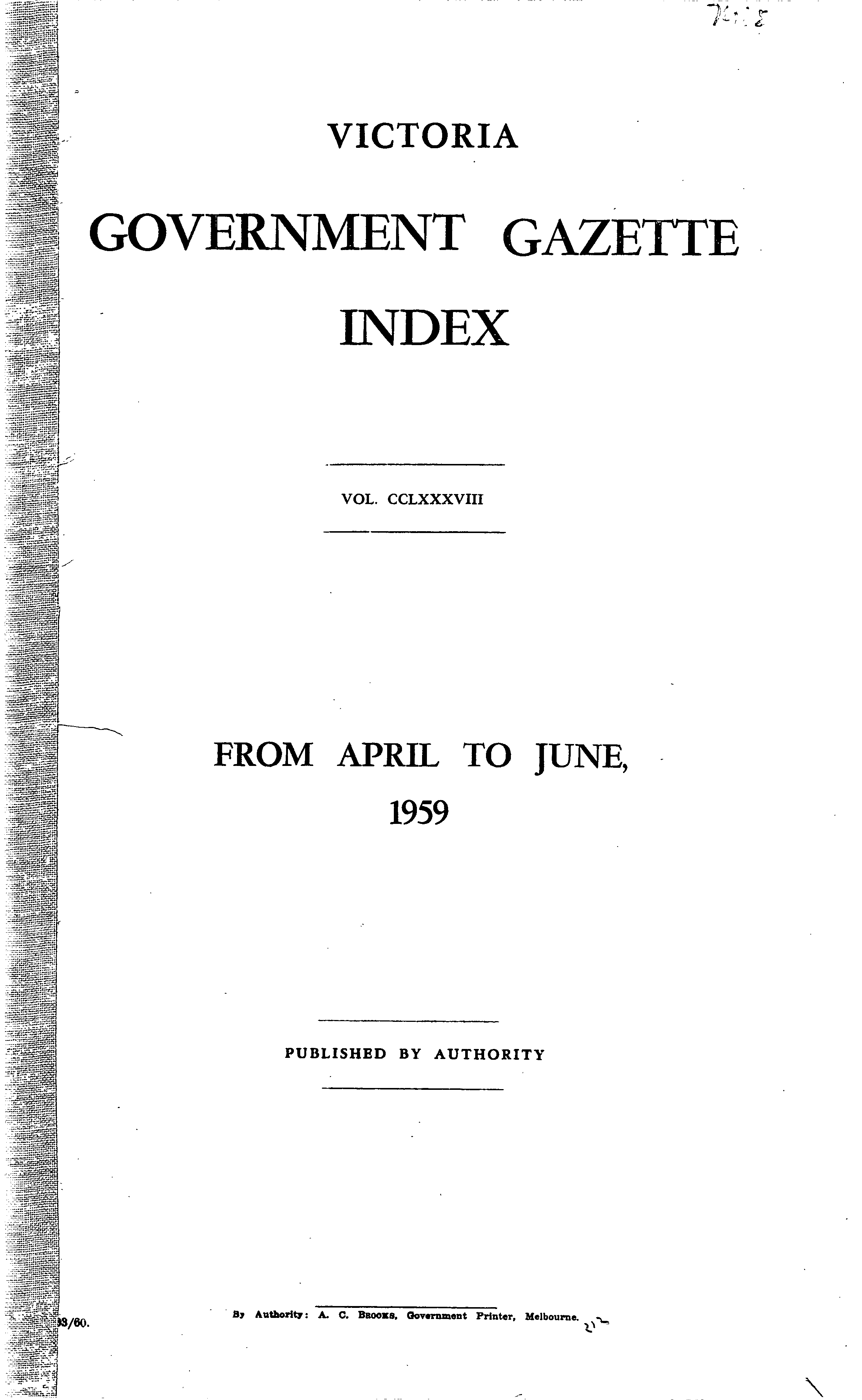 The Victoria Government Gazette is a publication of the Victorian Government Printer.