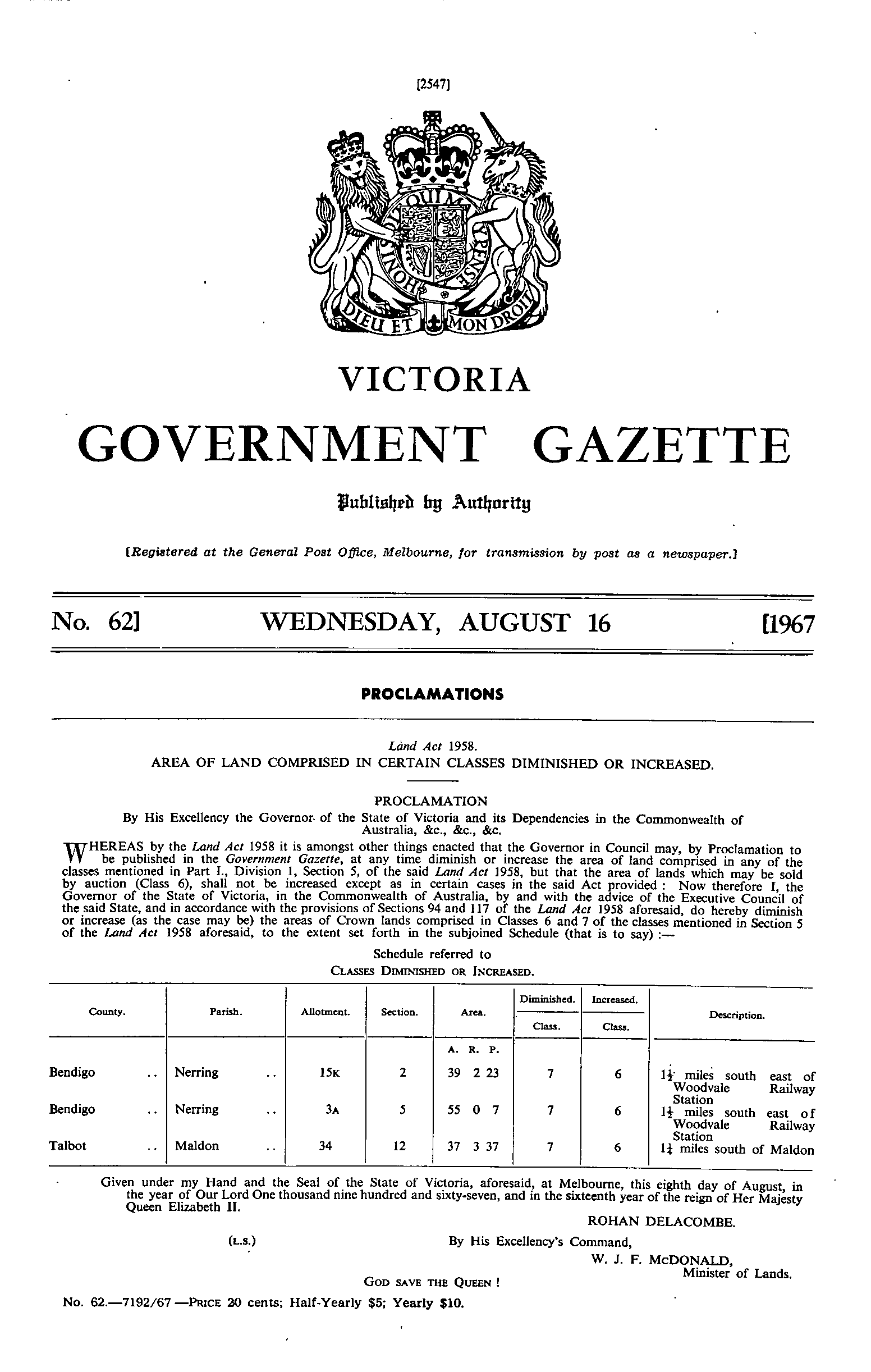 The Victoria Government Gazette is a publication of the Victorian Government Printer.