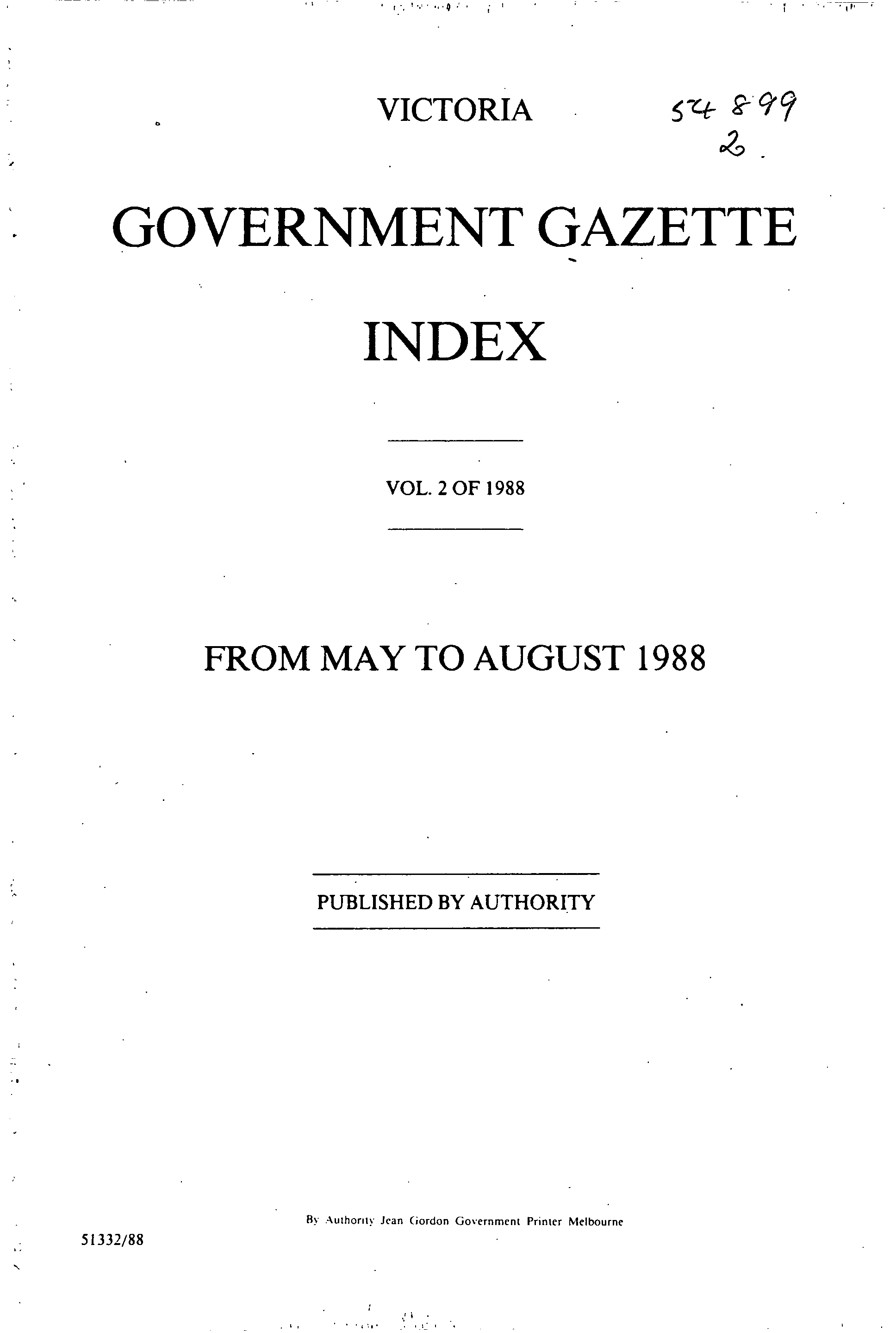 The Victoria Government Gazette is a publication of the Victorian Government Printer.