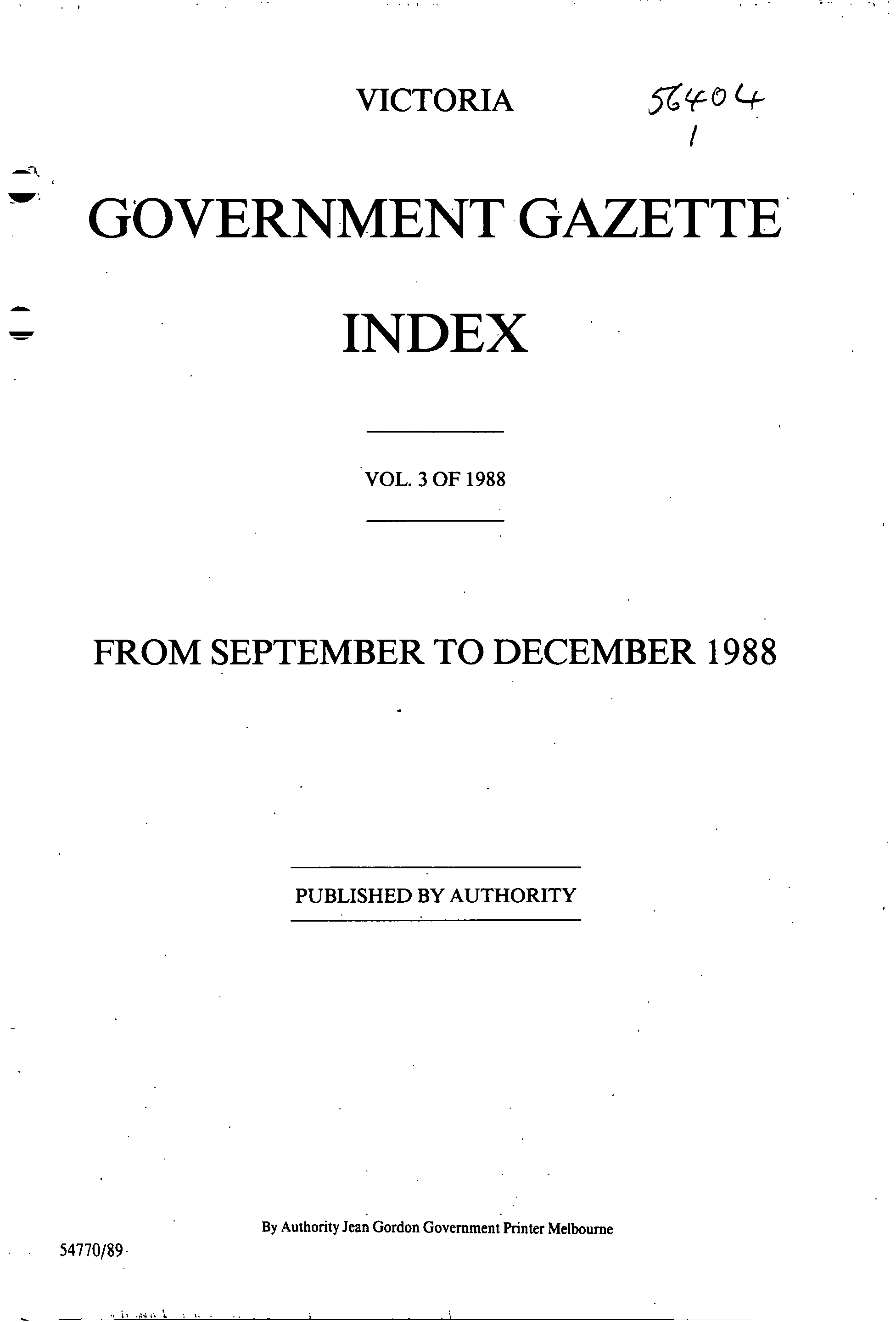 The Victoria Government Gazette is a publication of the Victorian Government Printer.