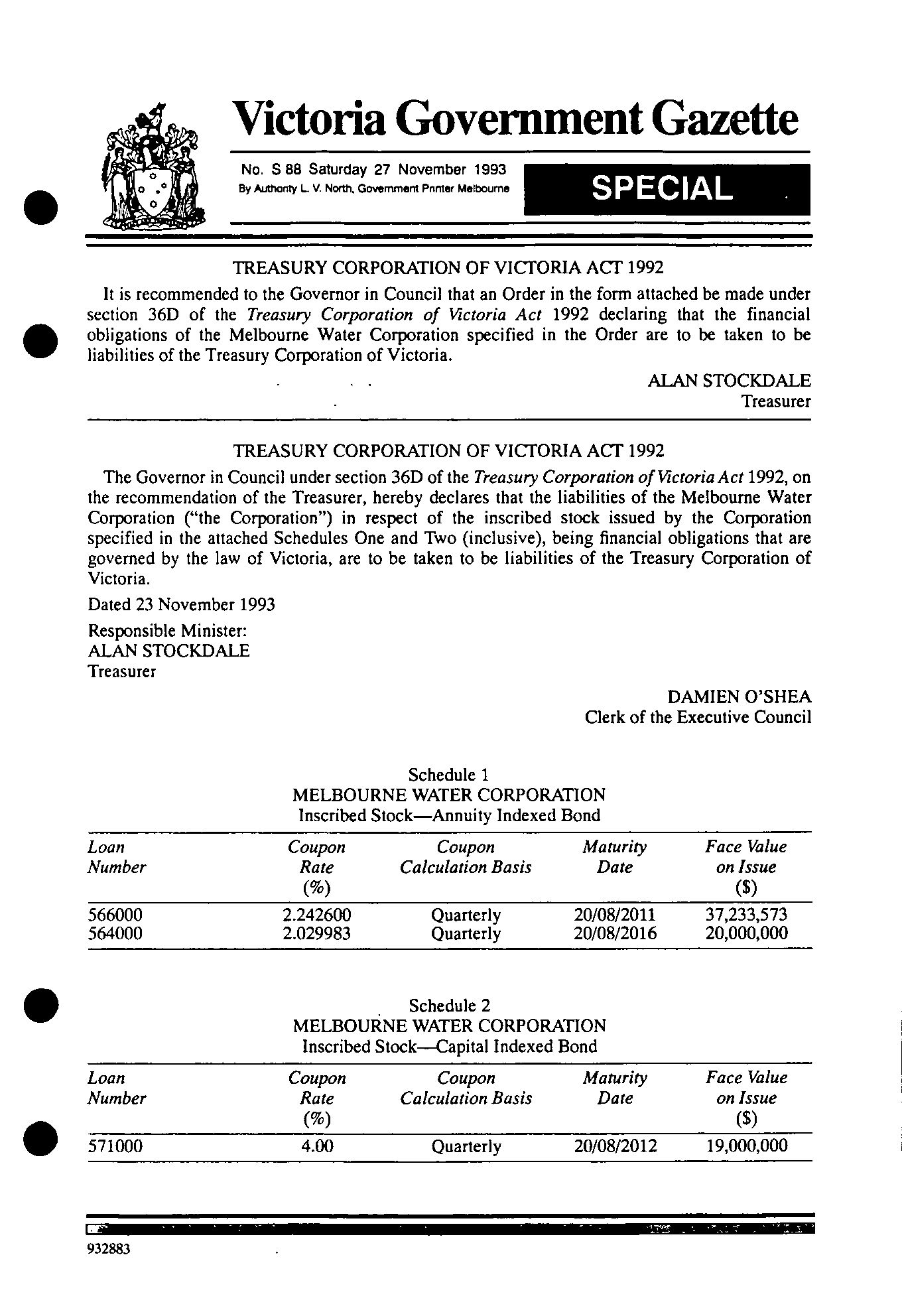 The Victoria Government Gazette is a publication of the Victorian Government Printer.