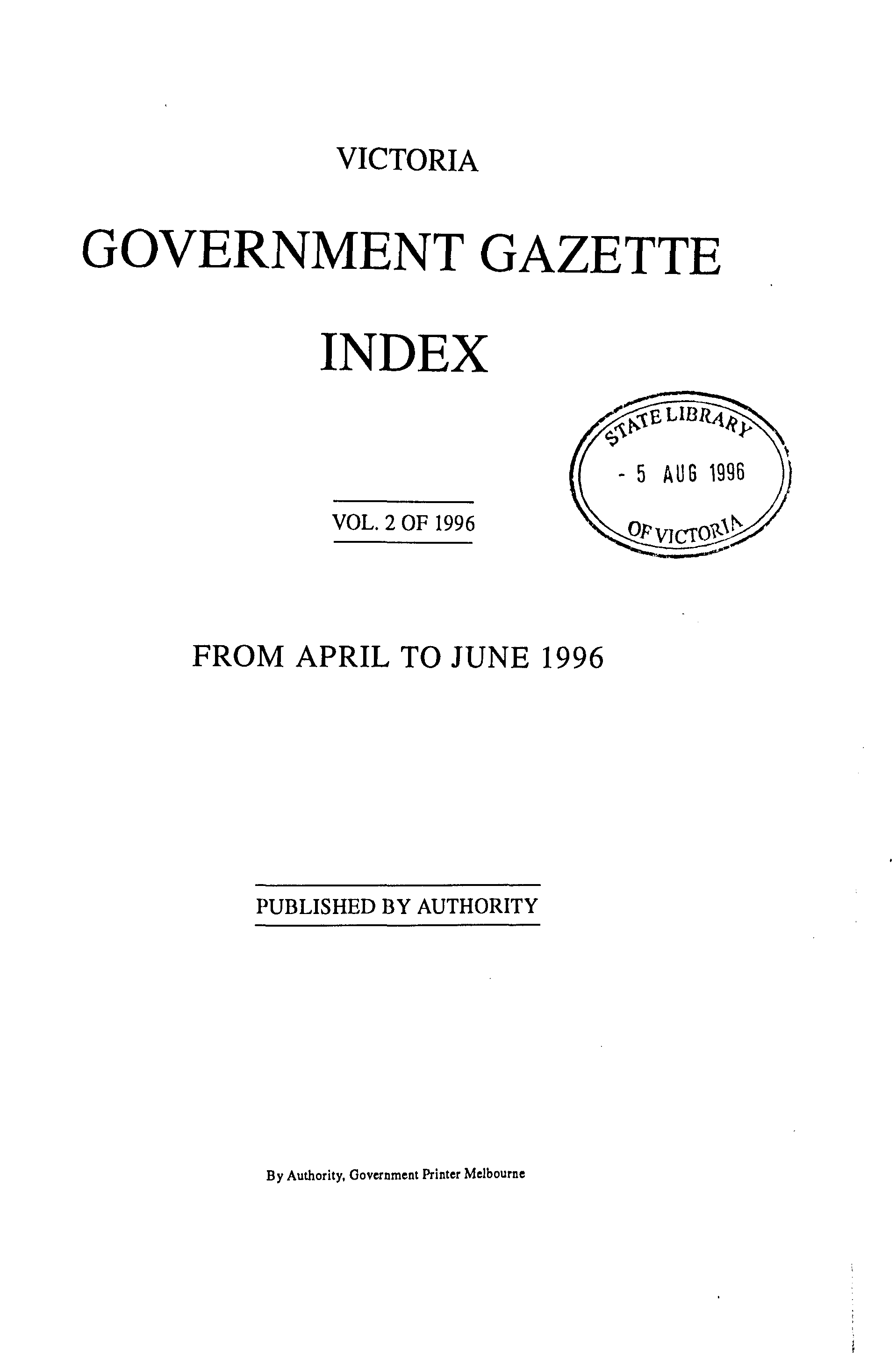 The Victoria Government Gazette is a publication of the Victorian Government Printer.