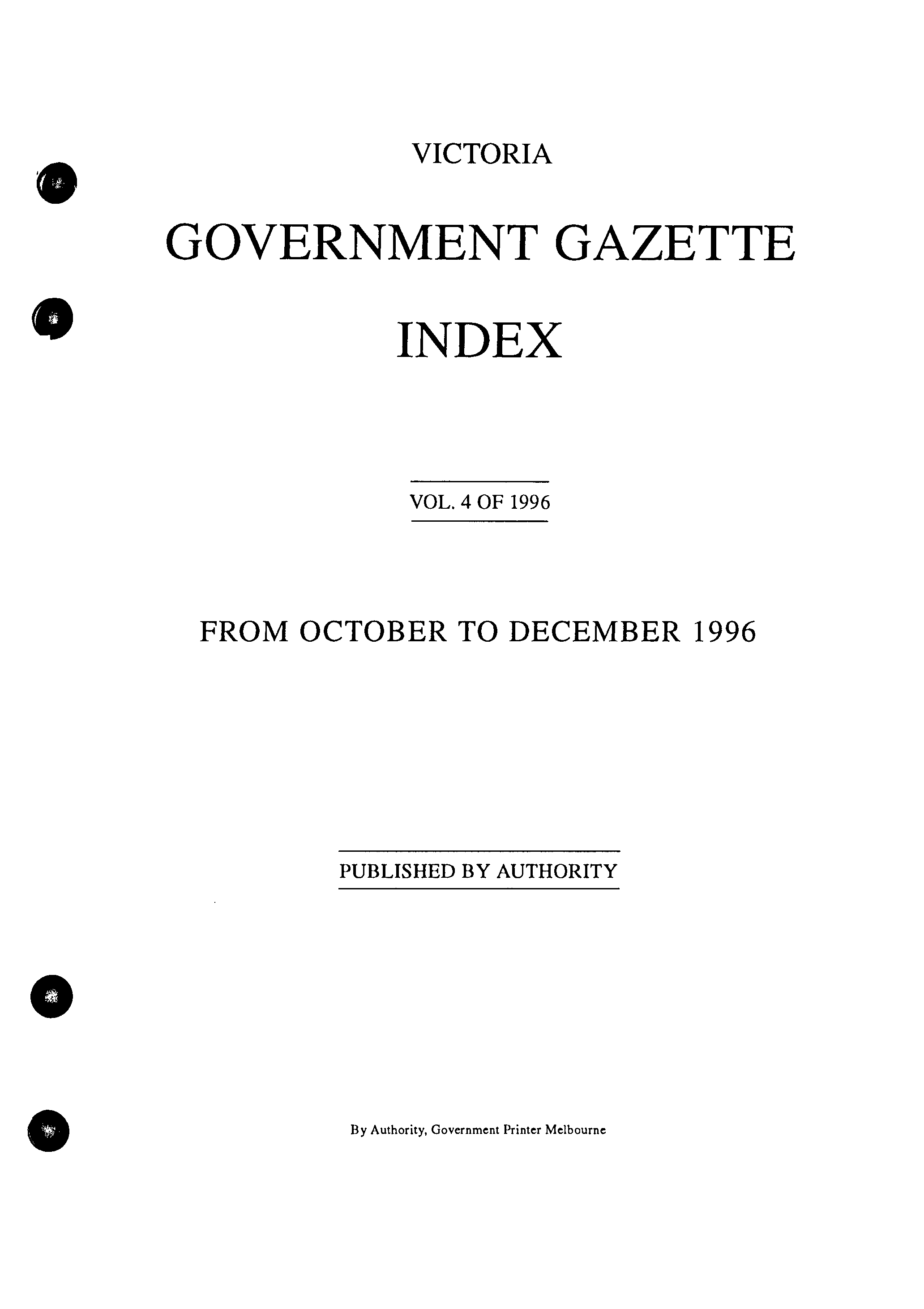 | Index, Date: Index for Oct - Dec 1996 |